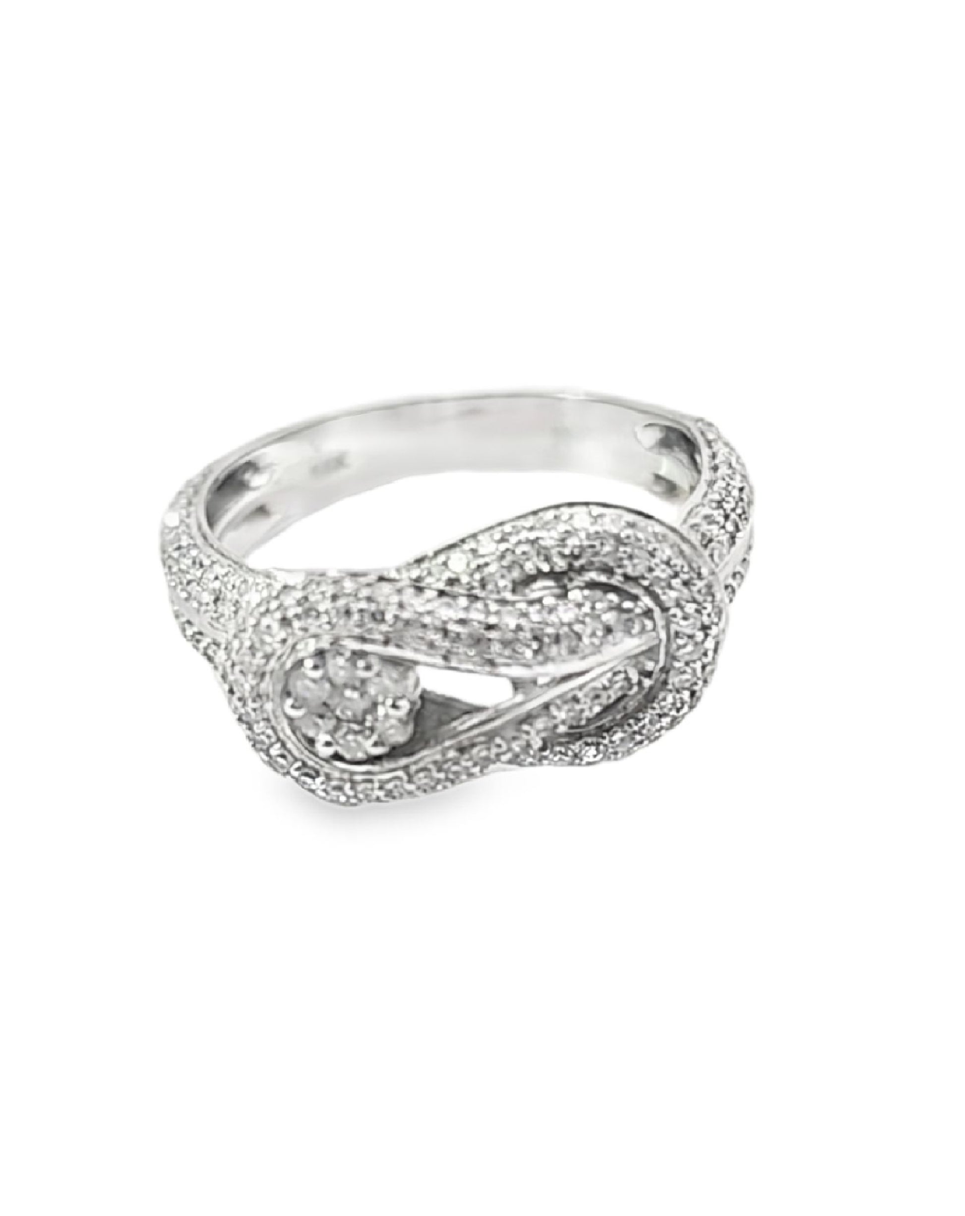 This Diamond Ring Entwines together in a knot like Design, very Attractive and Practical to wear. The Total Diamond weight is 0.90Ct.