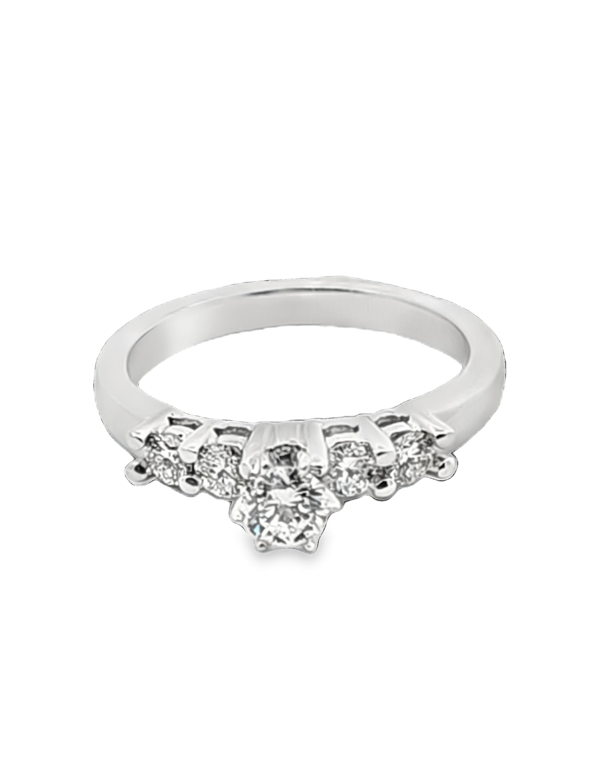 This Diamond Ring features 5 Solitaires together forever set in Protective raised mounting with Brilliant cut diamonds. The total Diamond weight is 0.60 Ct