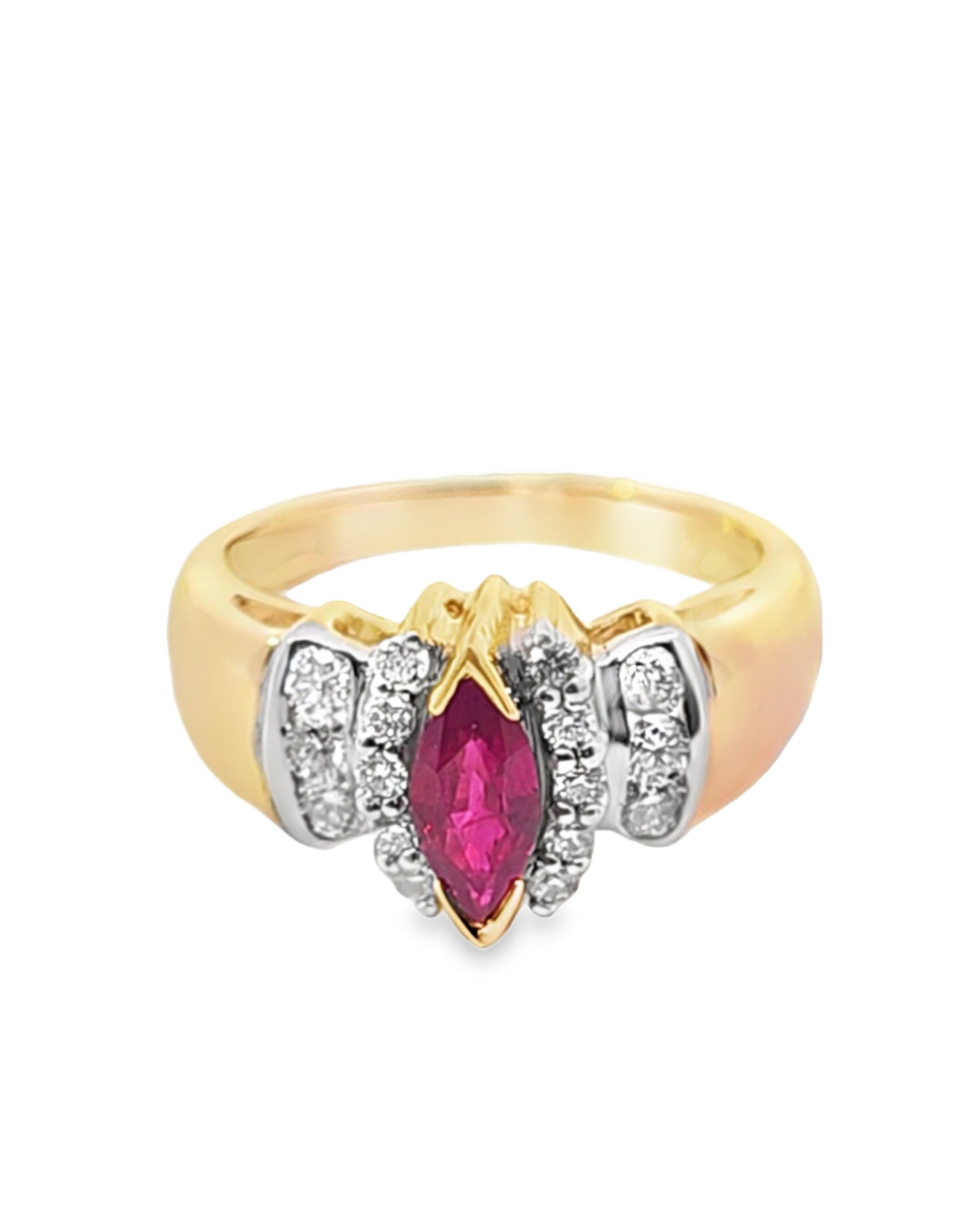 Marquise Ruby Diamond Ring 0.56 CT , 0.28 CT