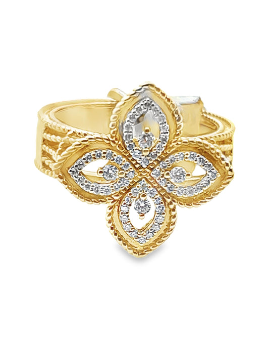 Elegant Floral Gold Ring, 0.24 CT, 14 KT GOLD