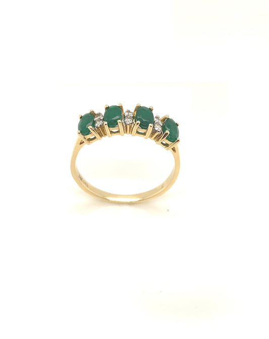 4 Oval Cut Emerald Diamond Ring, 0.10 CT + 0.89 CT