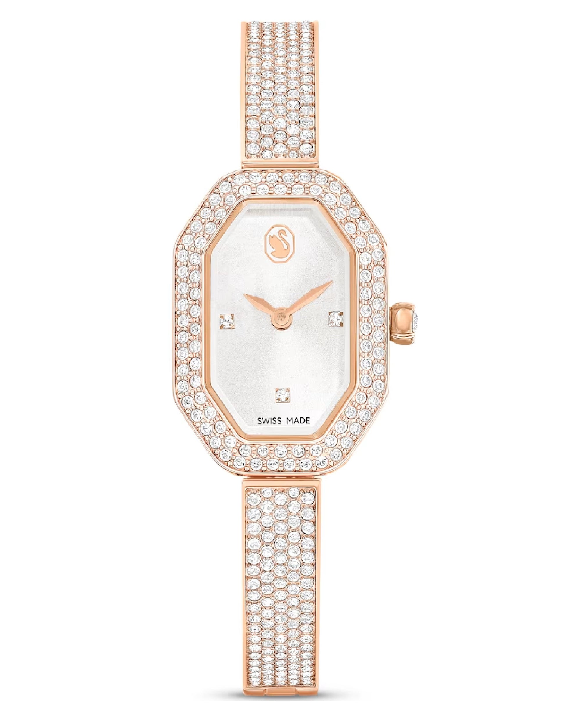 This light-catching Dextera bangle watch is crafted in Swarovski’s renowned iconic octagon shape. The 20mm x 30.5mm case features a rose gold-tone finish and is adorned with a pavé of 92 crystals on the bezel. This provides a perfect frame for the sunray dial, which features a swan logo at 12 o’clock and three crystallized index markers. Along with a single dazzling crystal set in the crown, the watch is also brought to life by 194 crystals set along the adjustable bracelet, providing exceptional beauty at every hour. This Swiss made watch is water resistant to 30m and combines joyful extravagance with signature Swarovski savoir-faire.
