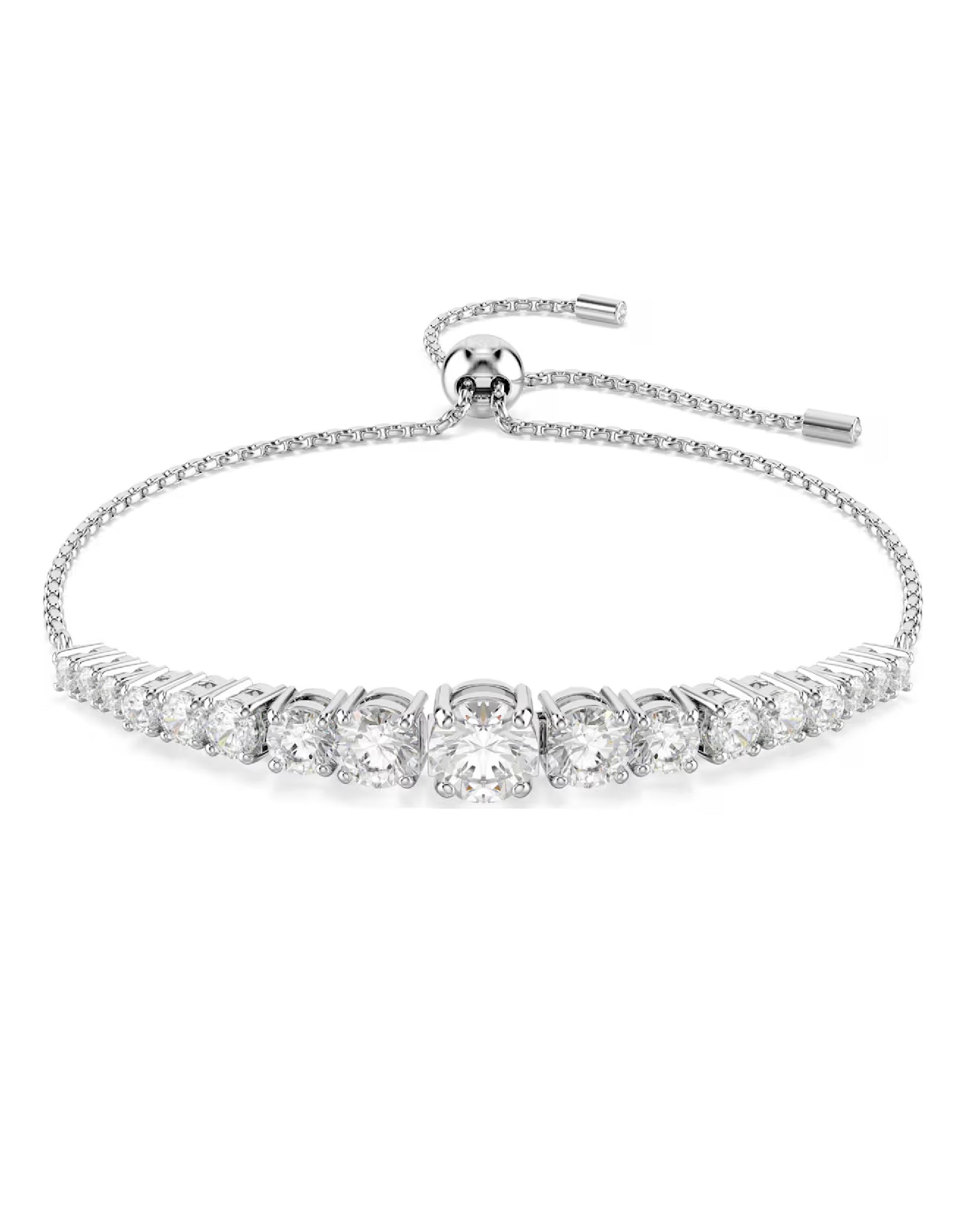 This radiant Matrix bracelet is a perfect way to let your personal style shine. Worn on a delicate chain with a sliding ball closure, the rhodium plated design is adorned in a gradient of round-cut Swarovski Zirconia, each faceted for light-reflecting wonder. Enhance the look of luxury by pairing the jewelry with a set of matching earrings or a necklace.