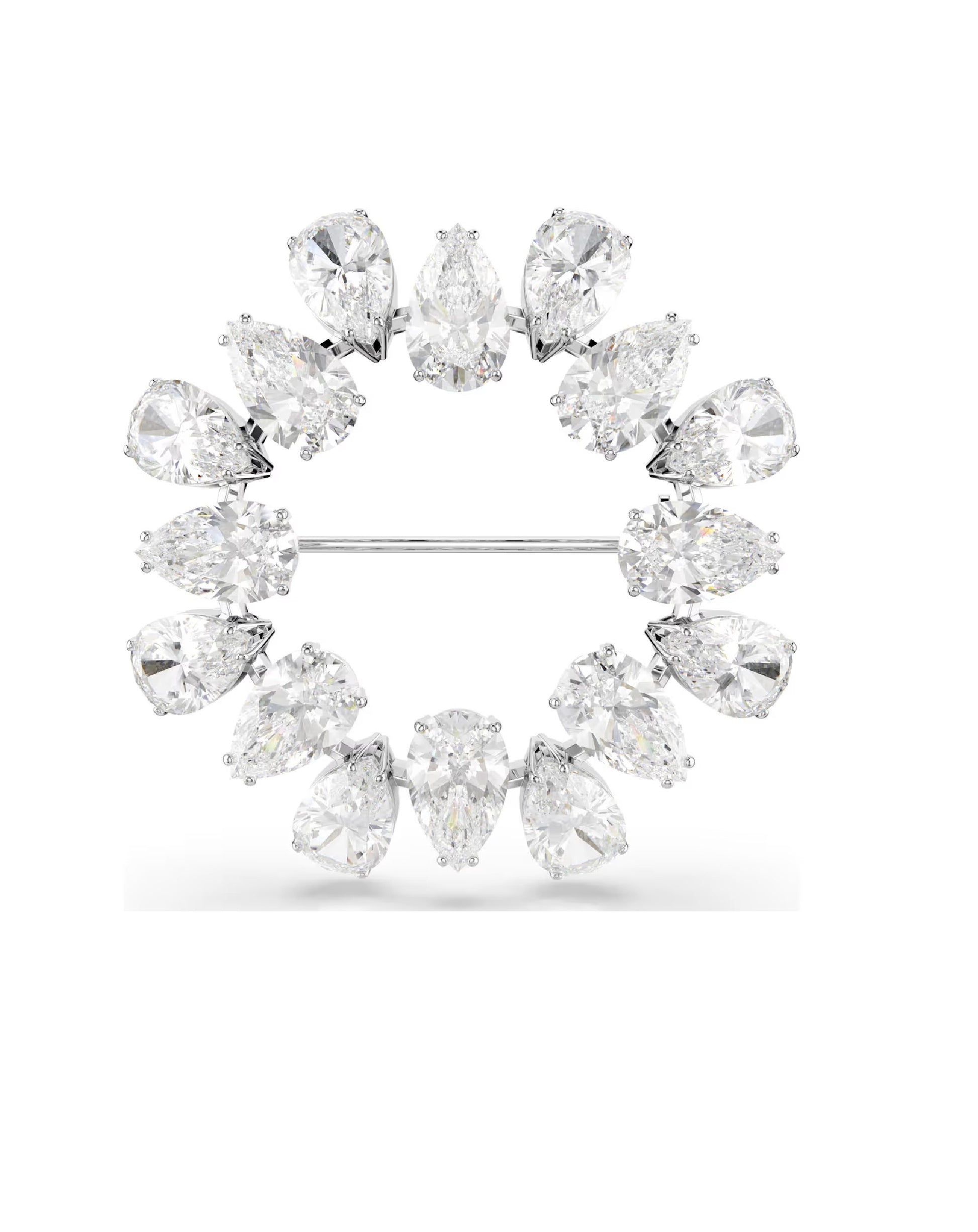 This radiant halo of light is the perfect accessory for illuminating your style. The rhodium plated design features a circle of pear-cut Swarovski Zirconia, presented in a clear hue with alternating directions for a stunning effect. Wear it alongside other pieces of Matrix jewelry to accentuate the elegance.