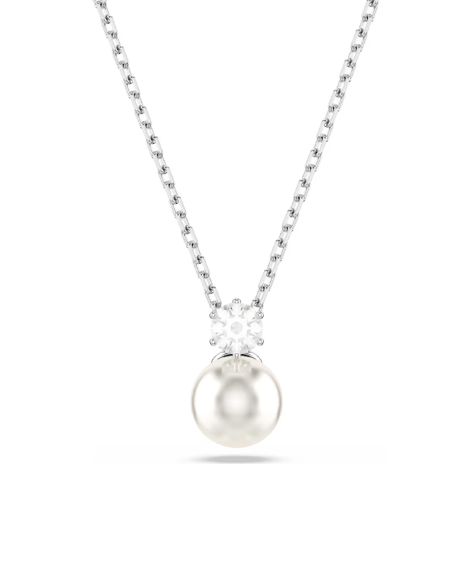 This delicate Matrix pendant showcases the beauty in simplicity. Suspended from an elegant chain, the rhodium plated jewelry features a single white Swarovski Crystal Pearl and a round-cut Swarovski Zirconia. It’s the perfect piece of light-filled luxury and can be easily paired with other pieces from the Matrix family.