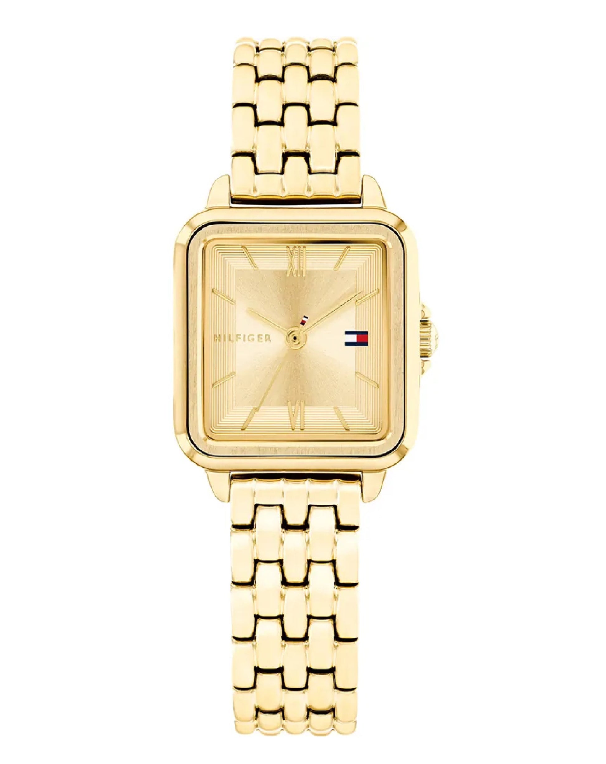 Tommy Hilfiger 1782832 watch for Female with a 24mm steel case square yellow plated, mineral glass and