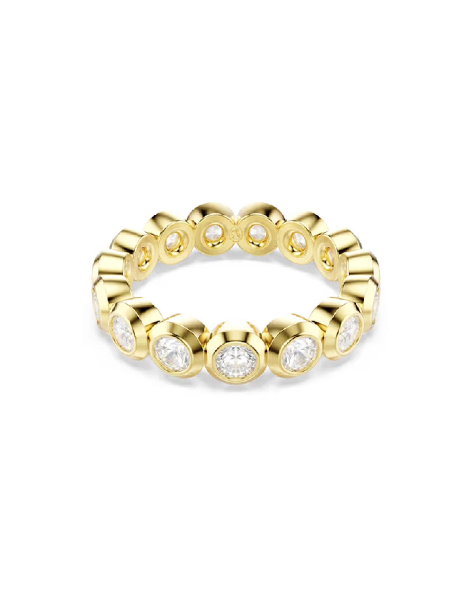 Crafted like a halo of light, this stunning Imber ring has gold-tone plating. It features a full circle of round-cut Swarovski Zirconia in a modern bezel setting. An eye-catching addition to any outfit, it will provide effortless glamour, day or night.