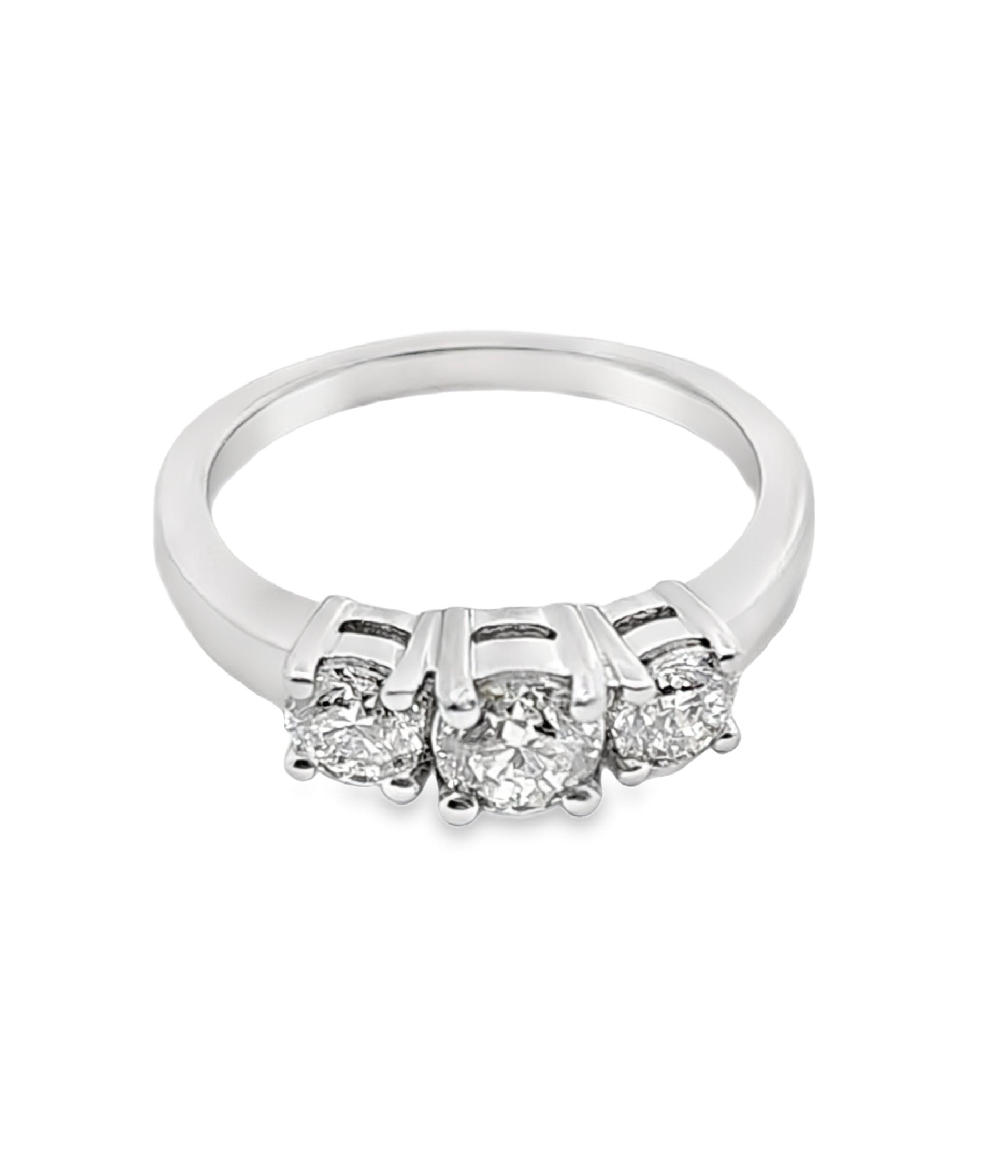 This Ring features a Trilogy 1.07 Ct Brilliant cut. Diamond Ring to suit all day long and any Occasion. The total Diamond weight is 1.07Ct.