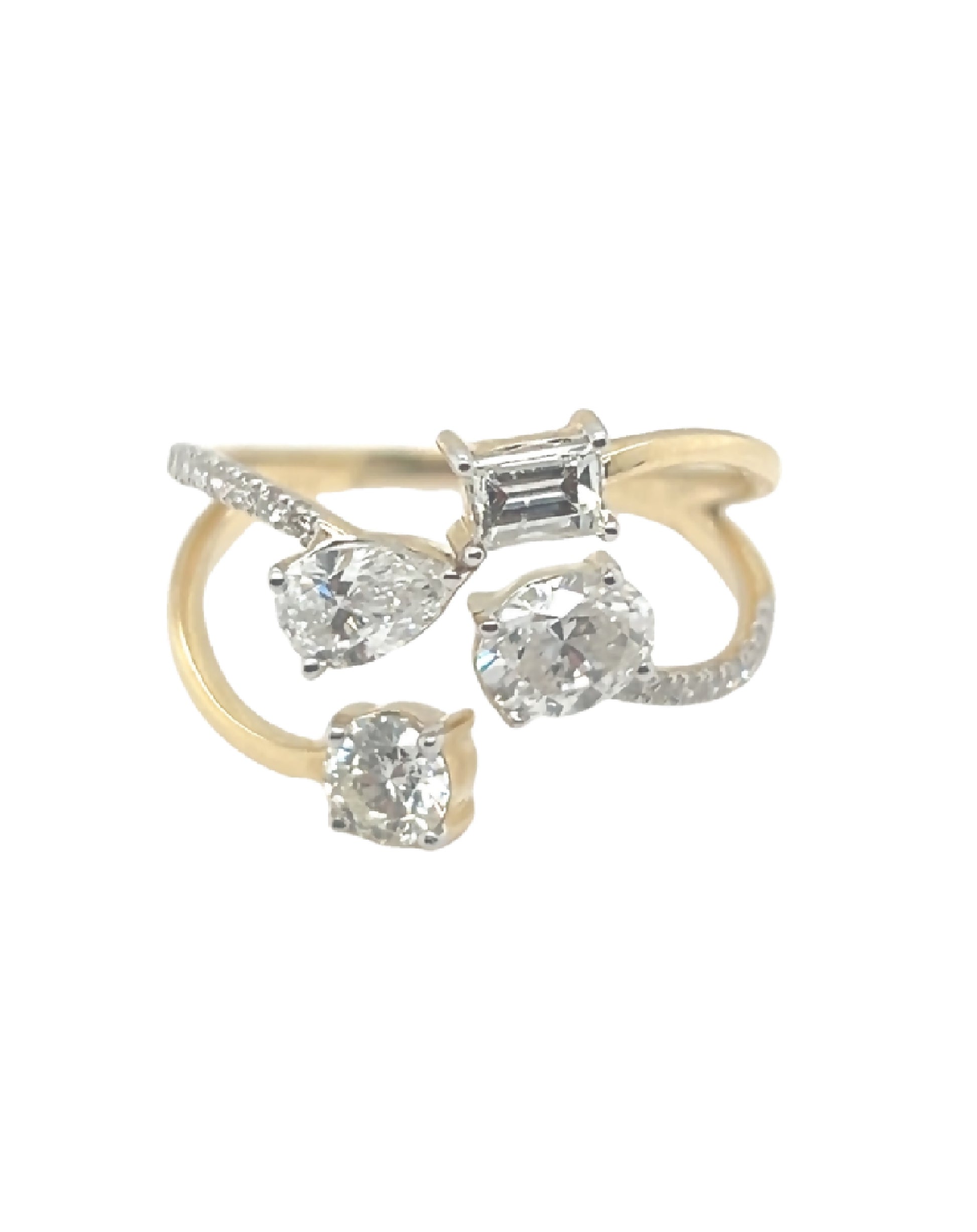 This Diamond Ring features Diamond Brilliant, Pear, Oval & Emerald Cut With Yellow Gold Dailywear Ring. The Total Diamond Weight is 1.21Ct