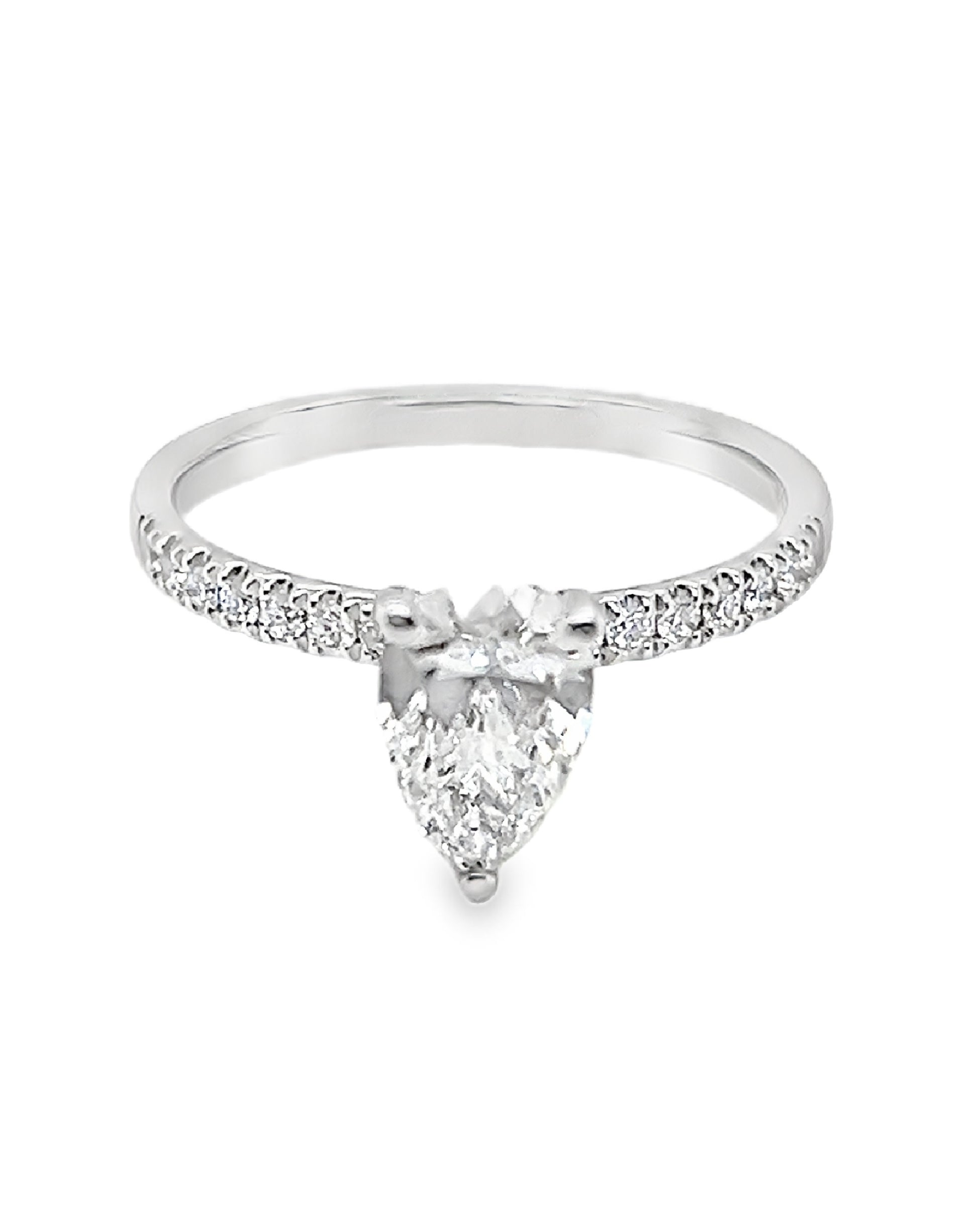 Este anillo de diamantes tiene 7 diamantes de talla brillante con un anillo de uso diario de oro blanco. El peso total del diamante es 0.07Ct