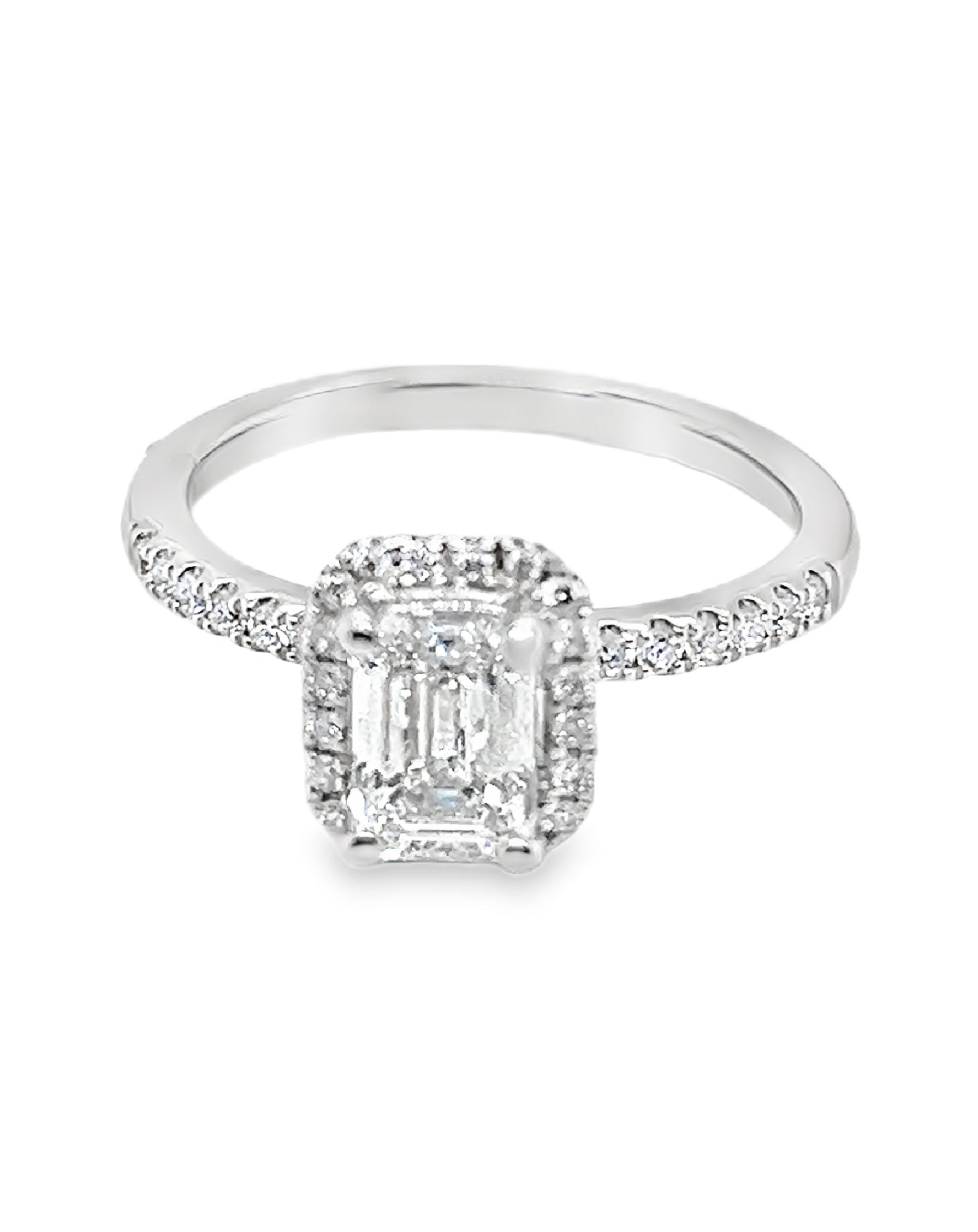Este anillo de diamantes tiene 7 diamantes de talla brillante con un anillo de uso diario de oro blanco. El peso total del diamante es 0.07Ct