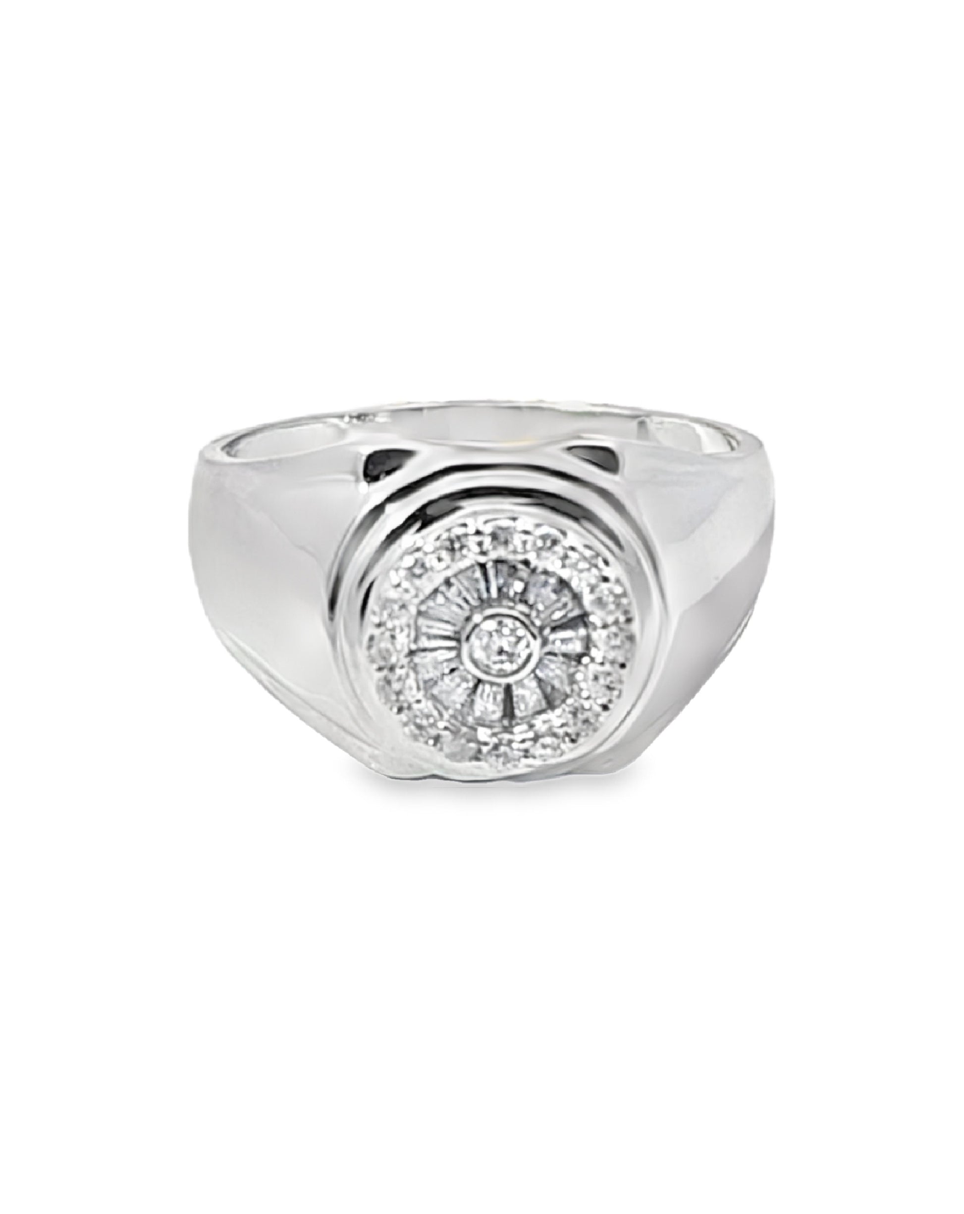 Este anillo de diamantes tiene 7 diamantes de talla brillante con un anillo de uso diario de oro blanco. El peso total del diamante es 0.07Ct