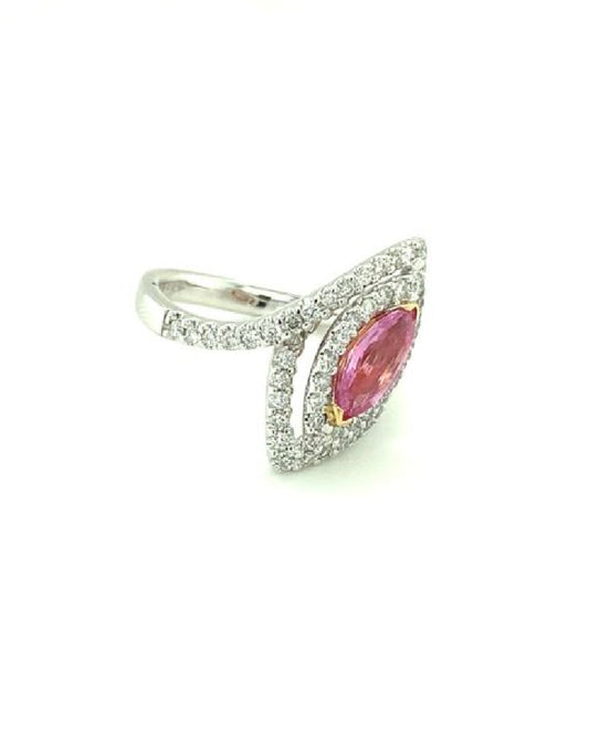 Anillo de oro blanco de 18 kt con zafiro rosa y diamantes