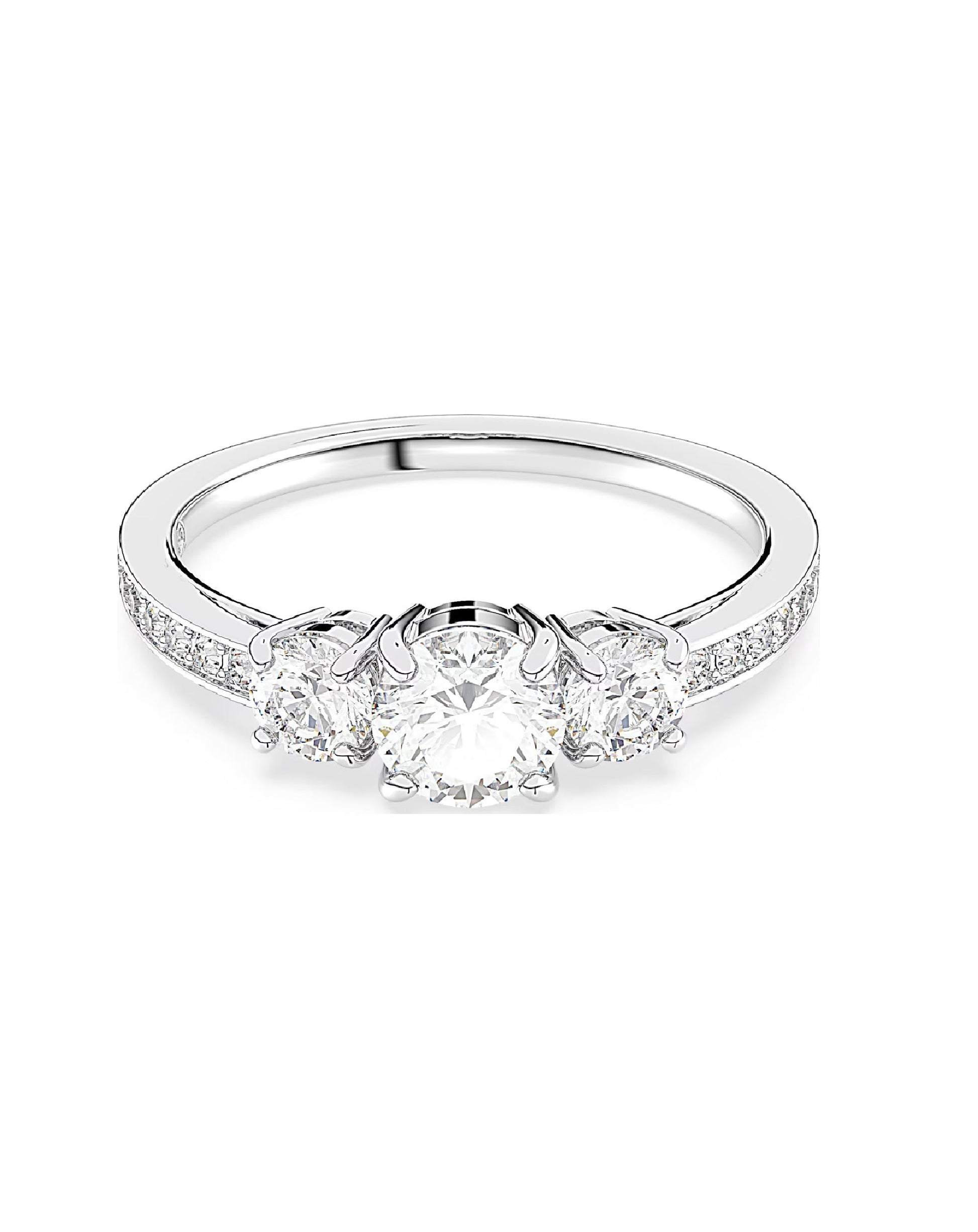 Crafted for every occasion, the Attract family evokes an effortless elegance. This classic ring takes radiance to the next level with clear crystals and a trio of precision-cut Swarovski Zirconia on a shining silver-tone finish. A beautiful piece of jewelry for everyday that can be easily matched with other pieces from the Attract family.