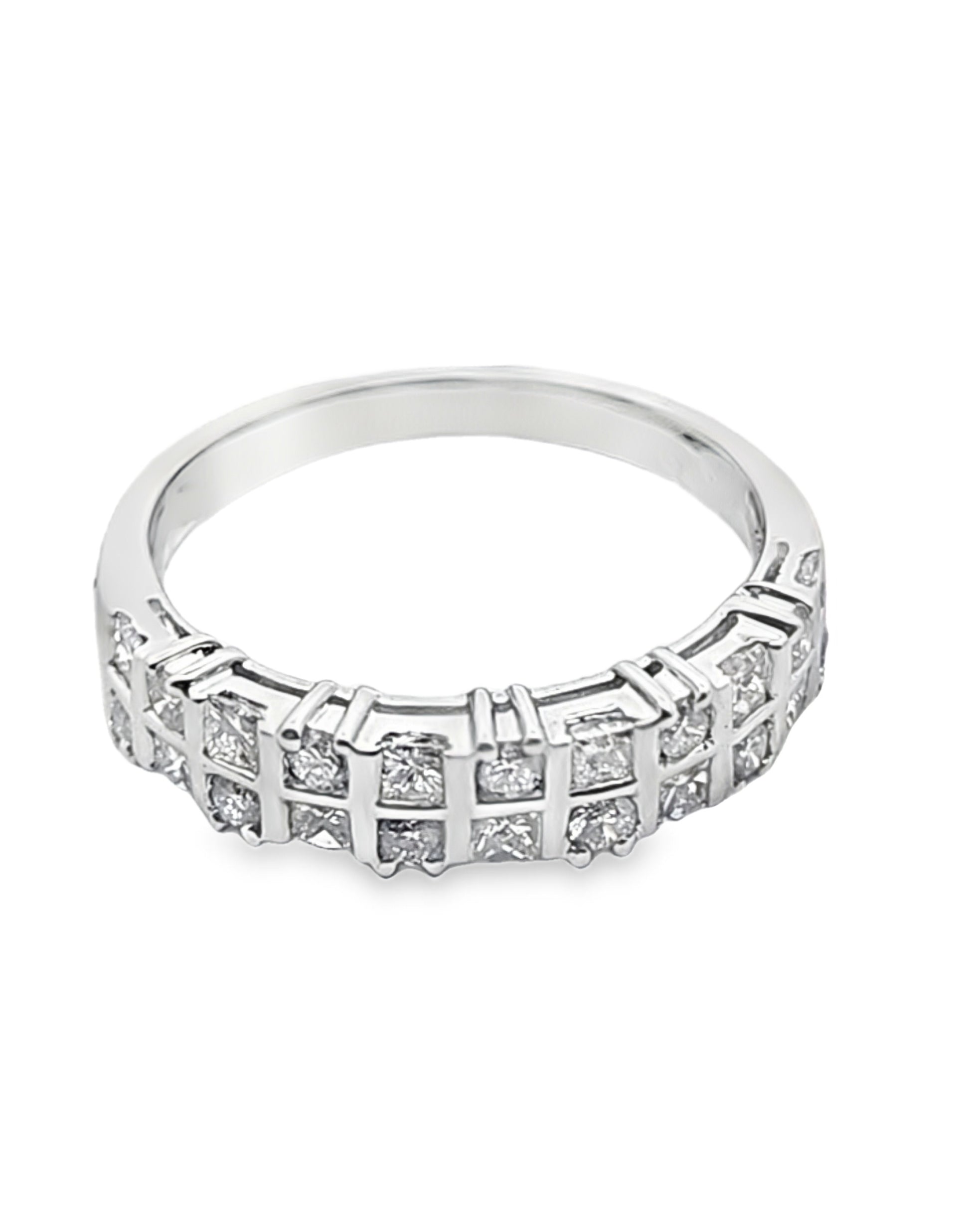 Elevate your elegance with this exquisite multistone ring, meticulously crafted in lustrous white gold. The ring features a dazzling array of princess cut diamonds, known for their brilliant sparkle and modern appeal. A timeless treasure that embodies sophistication and grace.