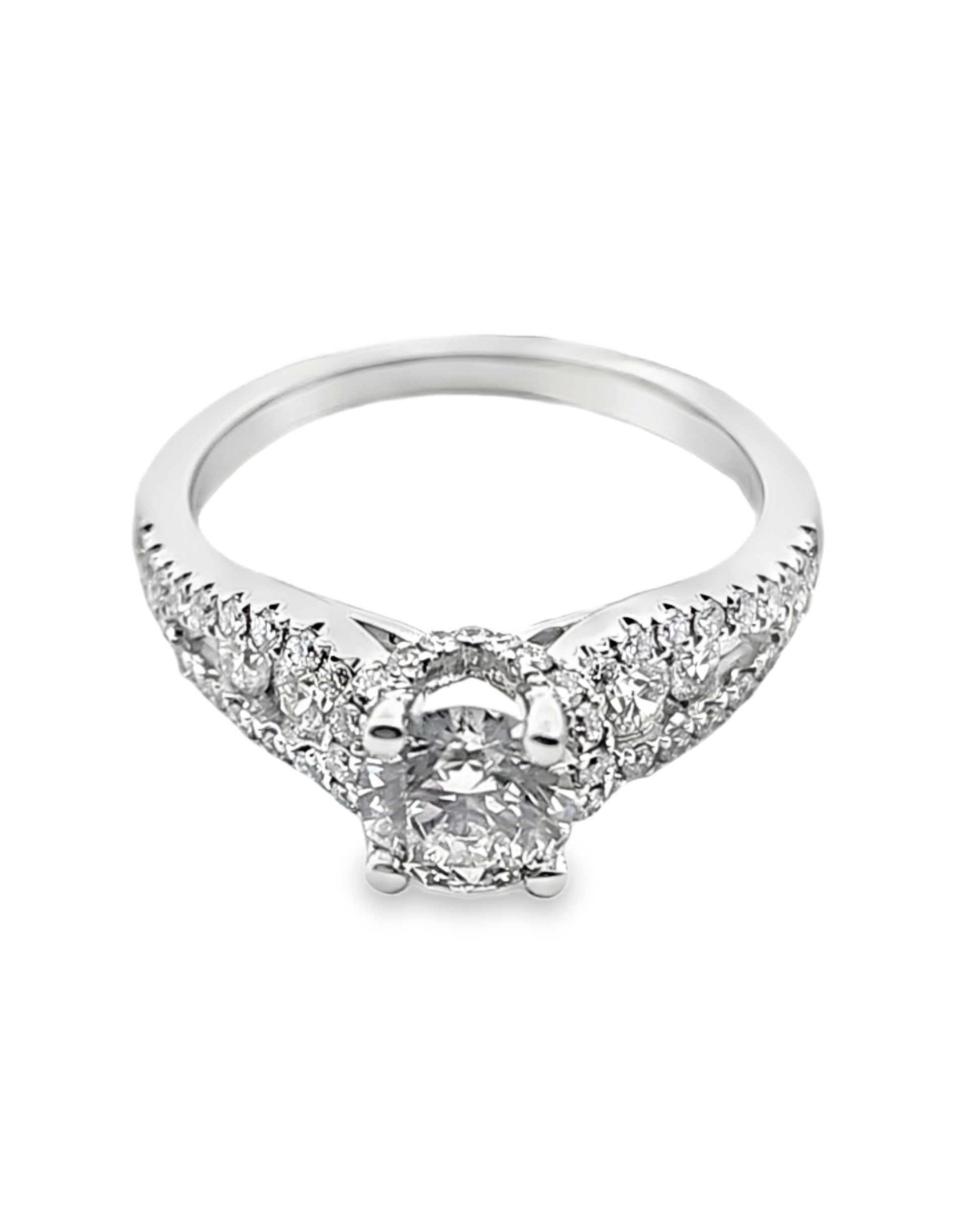 Elegant White Gold 18kt engagement ring featuring a brilliant cut round diamond. The setting is crafted in white gold, showcasing a dazzling display of light and fire. This timeless design is perfect for symbolizing a lifetime of love and commitment.