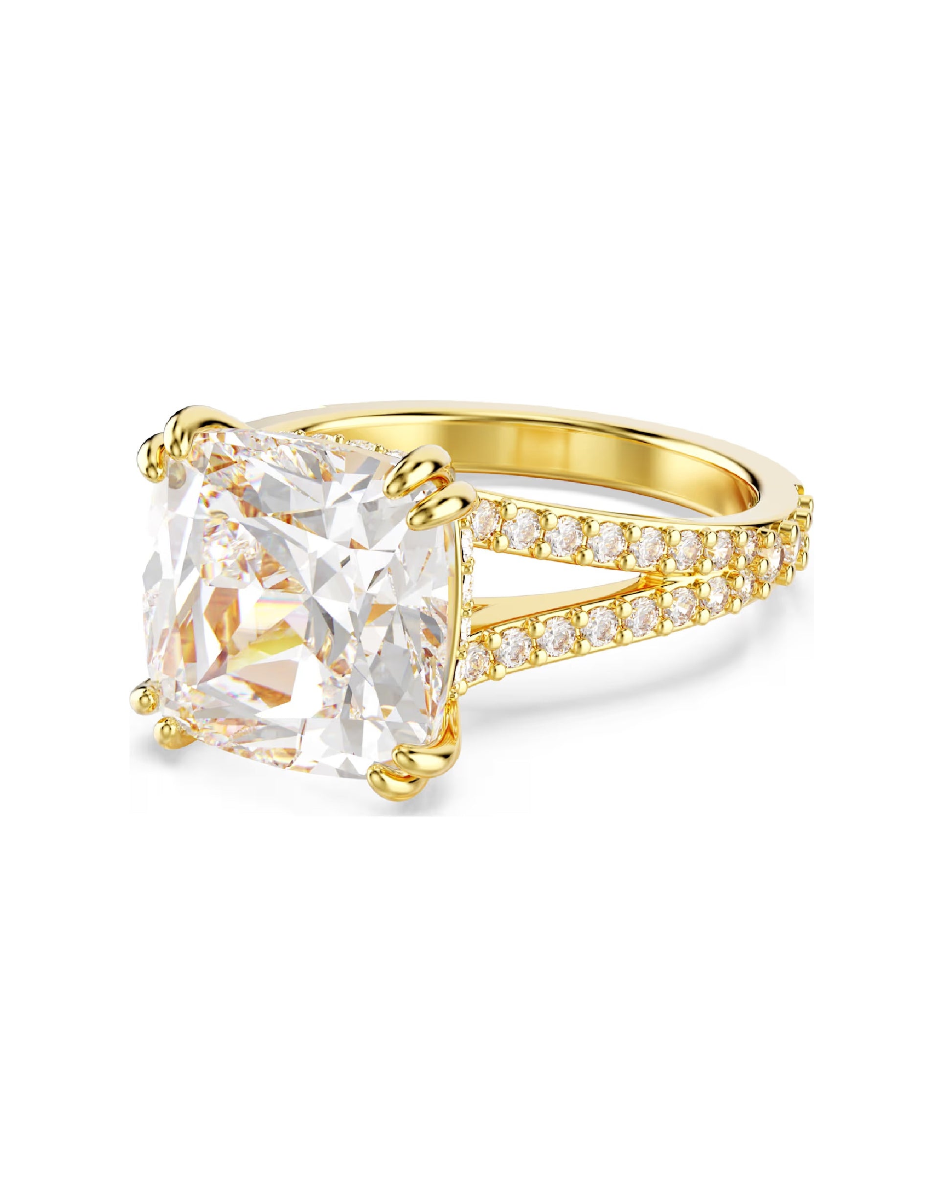 This spectacular accessory, which lives in its own luminous universe, reflects the beauty of the cosmos. The gold-tone plated design combines a pavé-embellished band ring with a solitaire ring, also incorporating pavé, with a large Swarovski Zirconia in the center. A brilliant gift that perfectly captures Swarovski's signature savoir-faire.