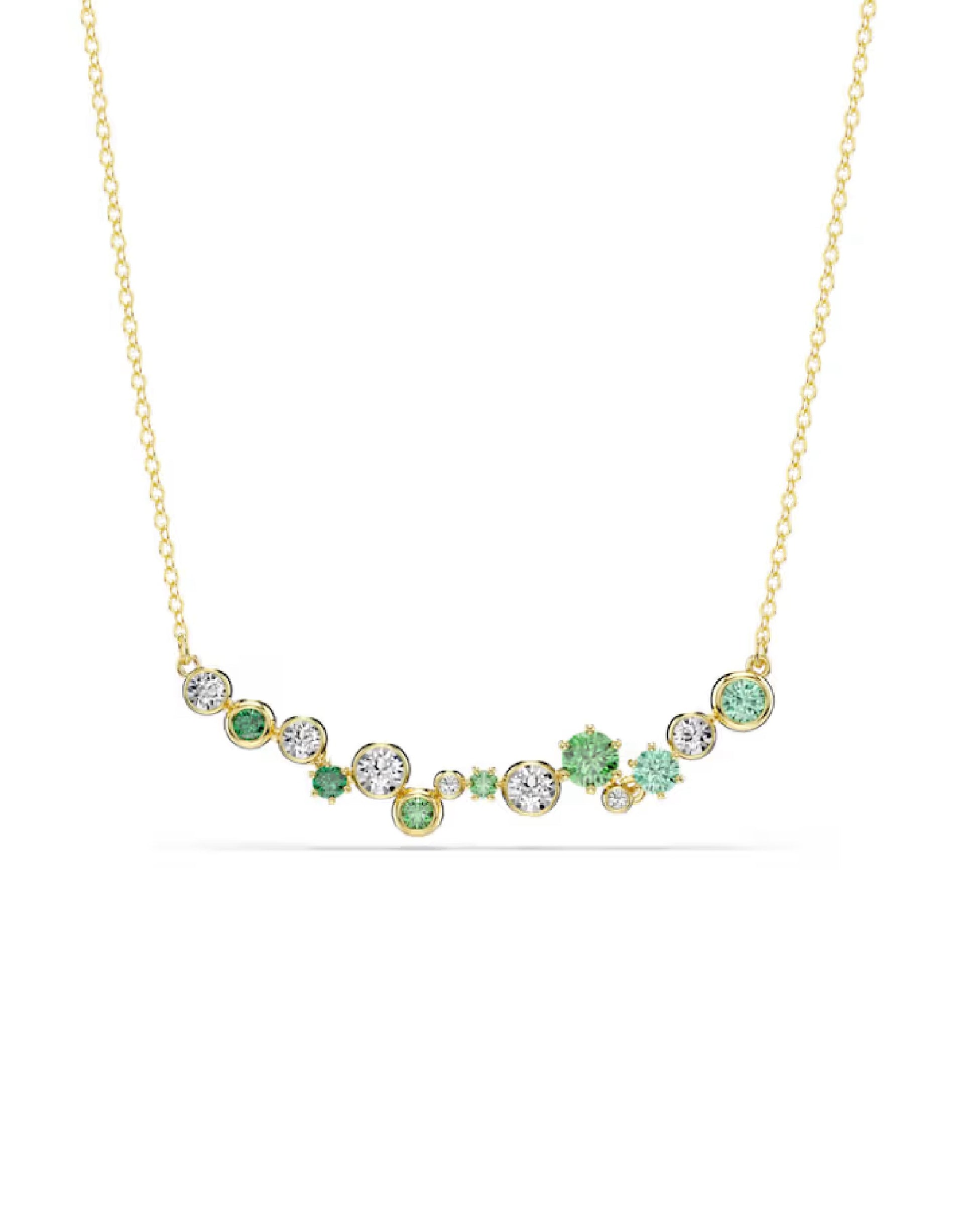 Inspired by a galaxy of shimmering stars, this striking Constella pendant glows with wonder. The rhodium plated chain features an oval-shaped central Swarovski Zirconia, which is presented in dazzling Green and framed by a pavé of clear round crystals. An additional stone is also placed at the end of the elongation for an extra touch of luxury. Pair this necklace with matching Constella earrings to color your look with joy.